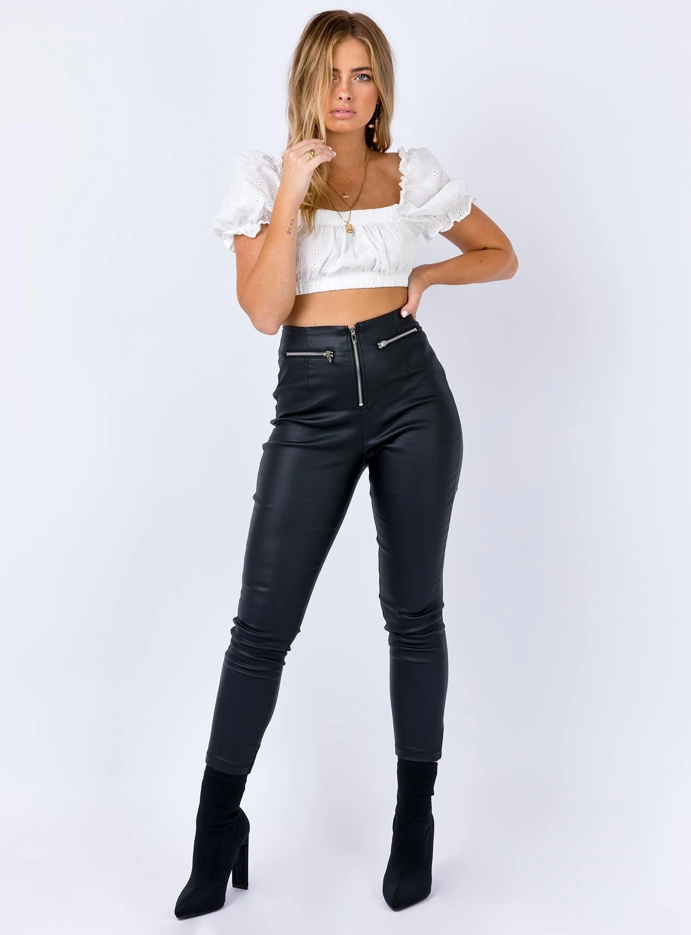 - Wet look pants